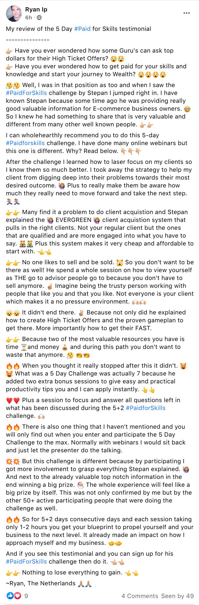 All results stated above are not typical, I'm not implying you'll duplicate them (or do anything for that matter). Any of my strategies and case studies are only estimates of what is possible. There is no assurance you'll do as well or even close to as well as I have done or other clients. Results are based on many factors including luck, hard work, and effort. We have no way of knowing how well you will do, as we do not know you, your background, your business model, or your work ethic etc. Therefore, we do not guarantee or imply that you will get better results or earn more money, that you will do as well, especially if the techniques are never implemented. Results are not typical. Success is dependent on multiple factors. Testimonials shown here are for examples only, and not a guarantee of return on investment. Your results may vary.